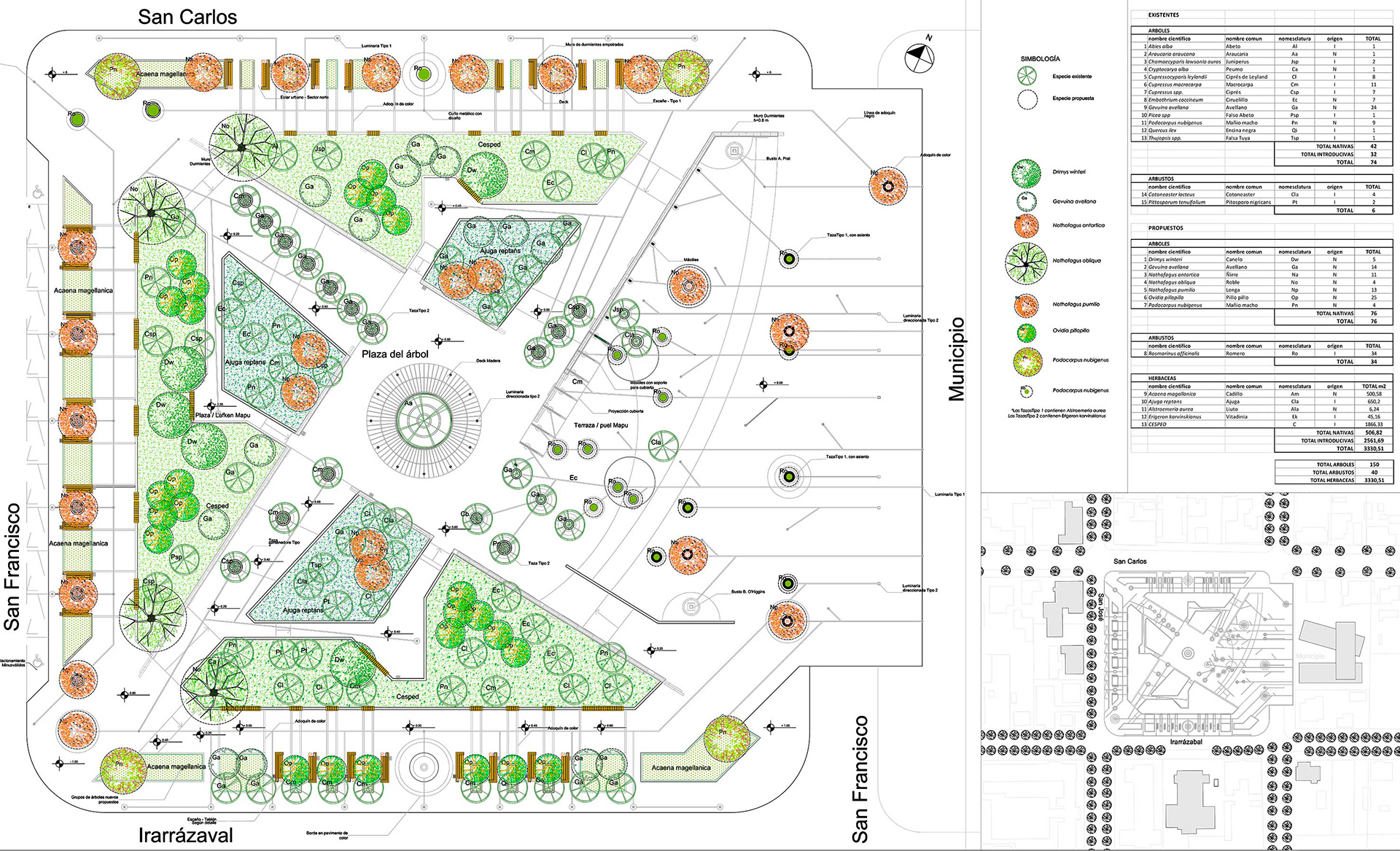 El Diseño considero las condiciones existentes, en especial de la vegetación la cual tiene como característica principal la poda topiaría, conservándola e integrándola a la nueva propuesta.